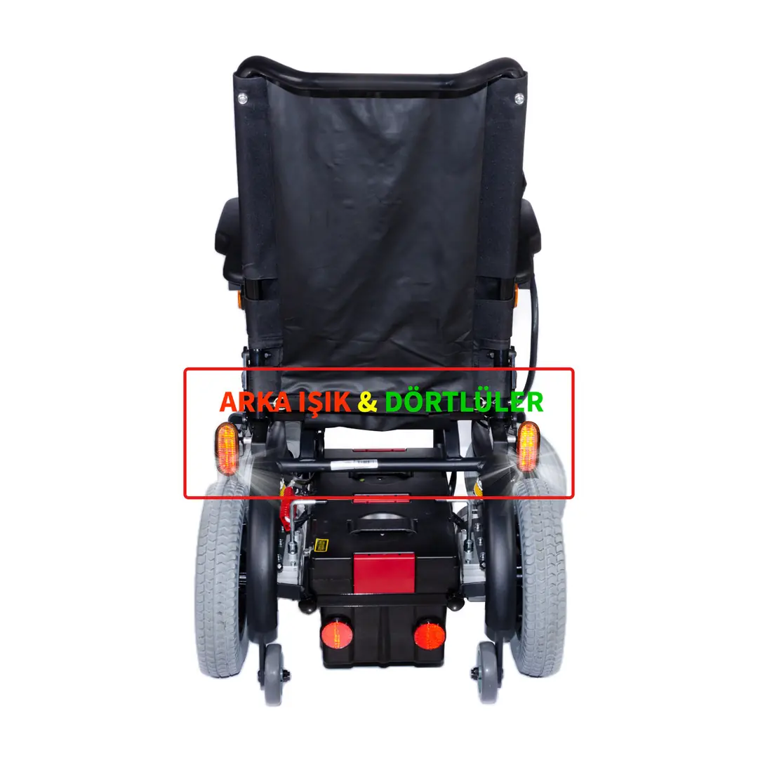 Kullanıcı transferini kolaylaştıran çıkarılabilir kol koyma yerleri ve ayarlanabilir ayak koyma yeri, pratik depolama imkanı sunar. Ergonomik kolçaklar, refakatçi kullanımına uygun bir tasarım sunarken, emniyet kemeri kullanıcı ölçülerine göre ayarlanabilir. Yokuş yukarı sürüşlerde geriye düşmeyi engelleyen antitipper tekerler, kullanıcı güvenliğini artırır.