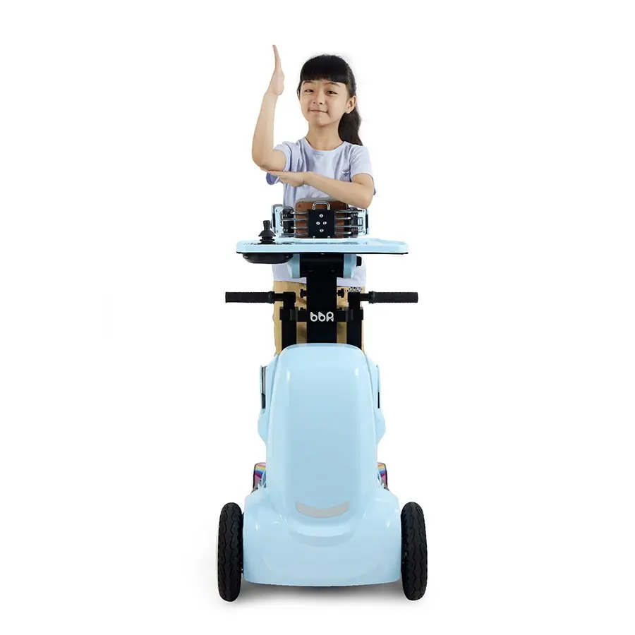 XZ-DROID P Robooter Pediatrik Akülü Tekerlekli Sandalye, estetik tasarımıyla da dikkat çekiyor. Çocukların ilgisini çeken canlı renk seçenekleri (parlak kırmızı, neşeli sarı veya sakin mavi gibi) ile hem işlevsel hem de eğlenceli bir deneyim sağlar. Ana metinde belirtilen 8 inç ön ve 10 inç arka tekerlekler, engebeli zeminlerde bile stabilite sunarak parkta, okulda veya evde rahat bir kullanım avantajı sağlar.